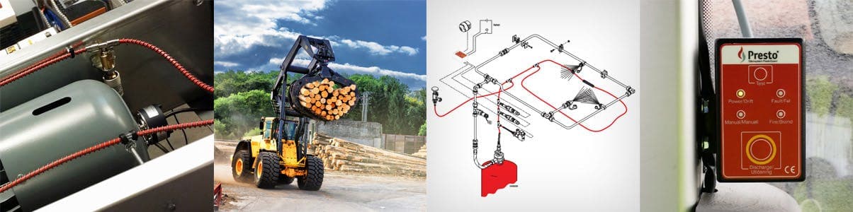 Presto erbjuder enkla och effektiva släcksystem för alla typer av fordon. Släckanläggningen kan enkelt anpassas till alla olika motorutrymmen och för alla typer av arbetsmaskiner som tunga fordon, lastbilar, anläggningsmaskiner, skördetröskor, gruvmaskiner och skogsmaskiner där en effektiv brandsläckning krävs.