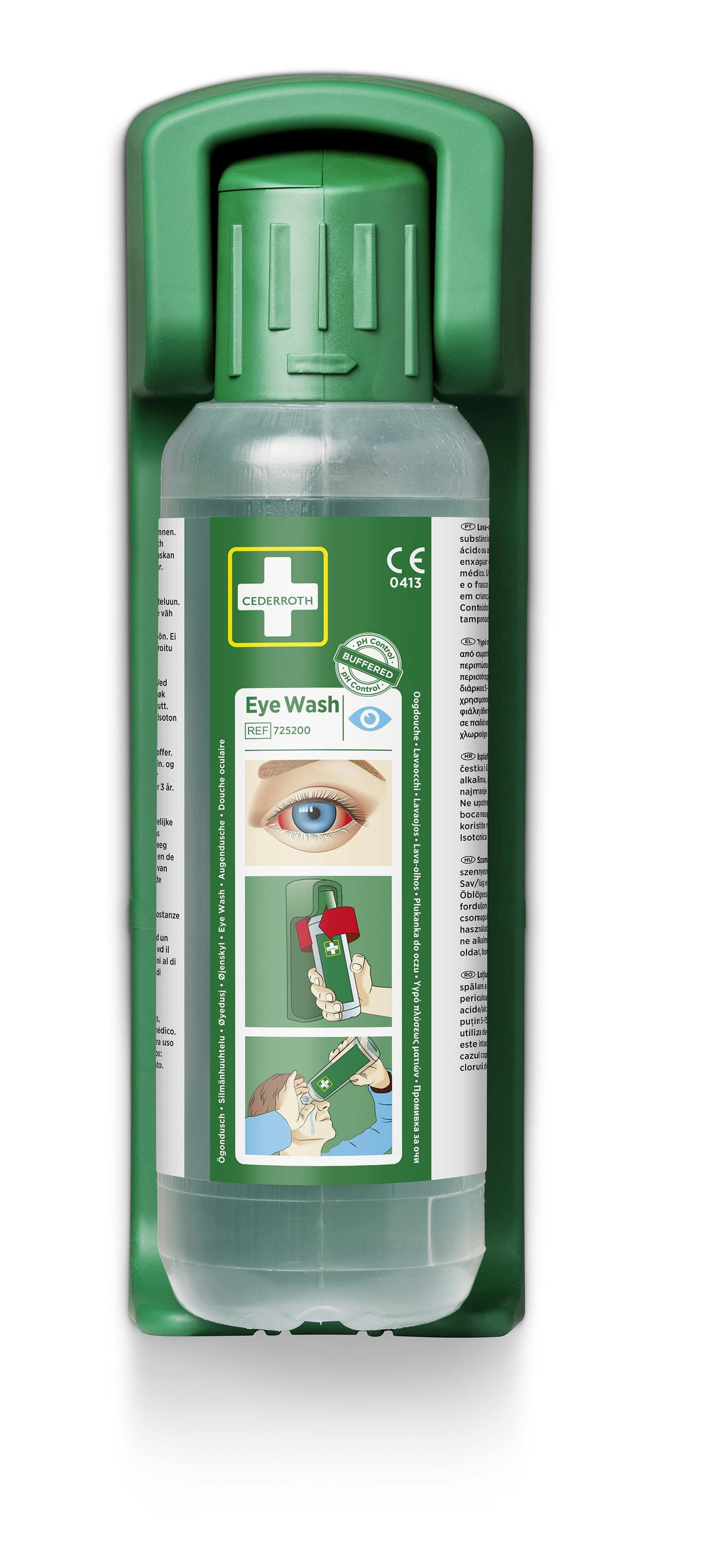 Robust och praktisk vägghållare för Cederroth ögondusch 500 ml. Med vägghållaren får flaskan en bestämd plats så att alla vet var den finns.