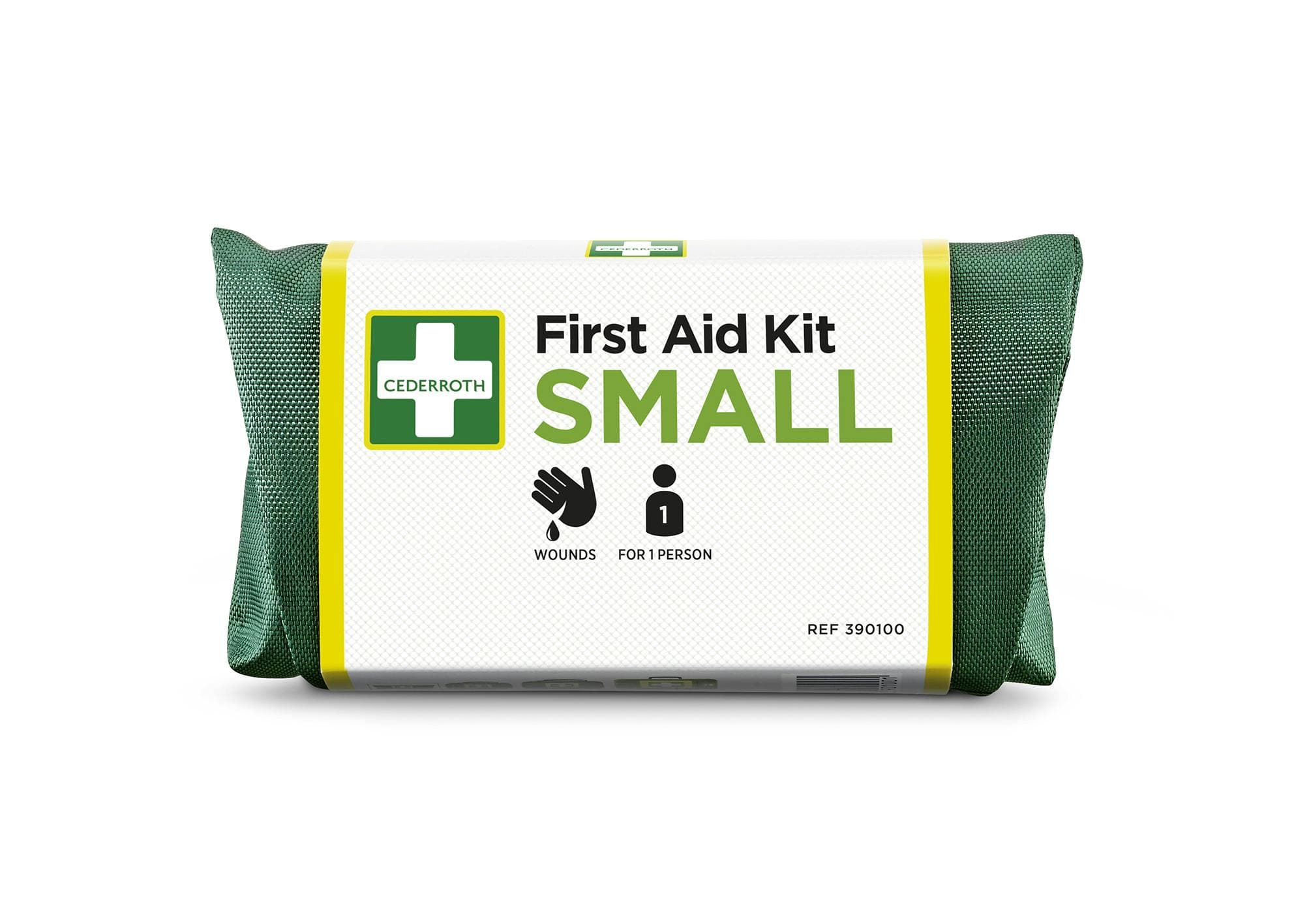 Cederroth First Aid Kit Small är vår minsta men ändå en välutrustad väska. Fodralet är av slitstark nylon som skyddar utrustningen från smuts och damm. Praktiskt kardborrband gör väskan snabb och enkel att öppna. Den smidiga lilla väskan kan bäras i fickan eller fästas med hällor i bältet. Alla produkter är försedda med tydliga självförklarande instruktioner. Signalfärgerna grönt och gult gör väskan synlig på långt håll.